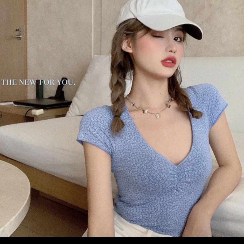 Brandy Melville Blue White Daisy Floral Crop Rouched V Neck Gina Top Nwt Xs S 36 00 Picclick Brandy Melville Outfits Cute Casual Outfits Top Outfits